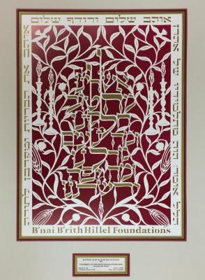 Poster edition of original papercut designed for the B'nai B'rith Hillel Foundations. This was presented to the University of Cincinnati Hillel Foundation; the foundation was awarded the Elie Wiesel Award for Jewish Arts and Culture for their 1993 Jewish Folk Festival.