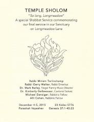 Temple Sholom "So Long, Longmeadow." A Special Service Commemorating the Final Service in the Sanctuary on Longmeadow Lane, 2015 (Cincinnati, OH)